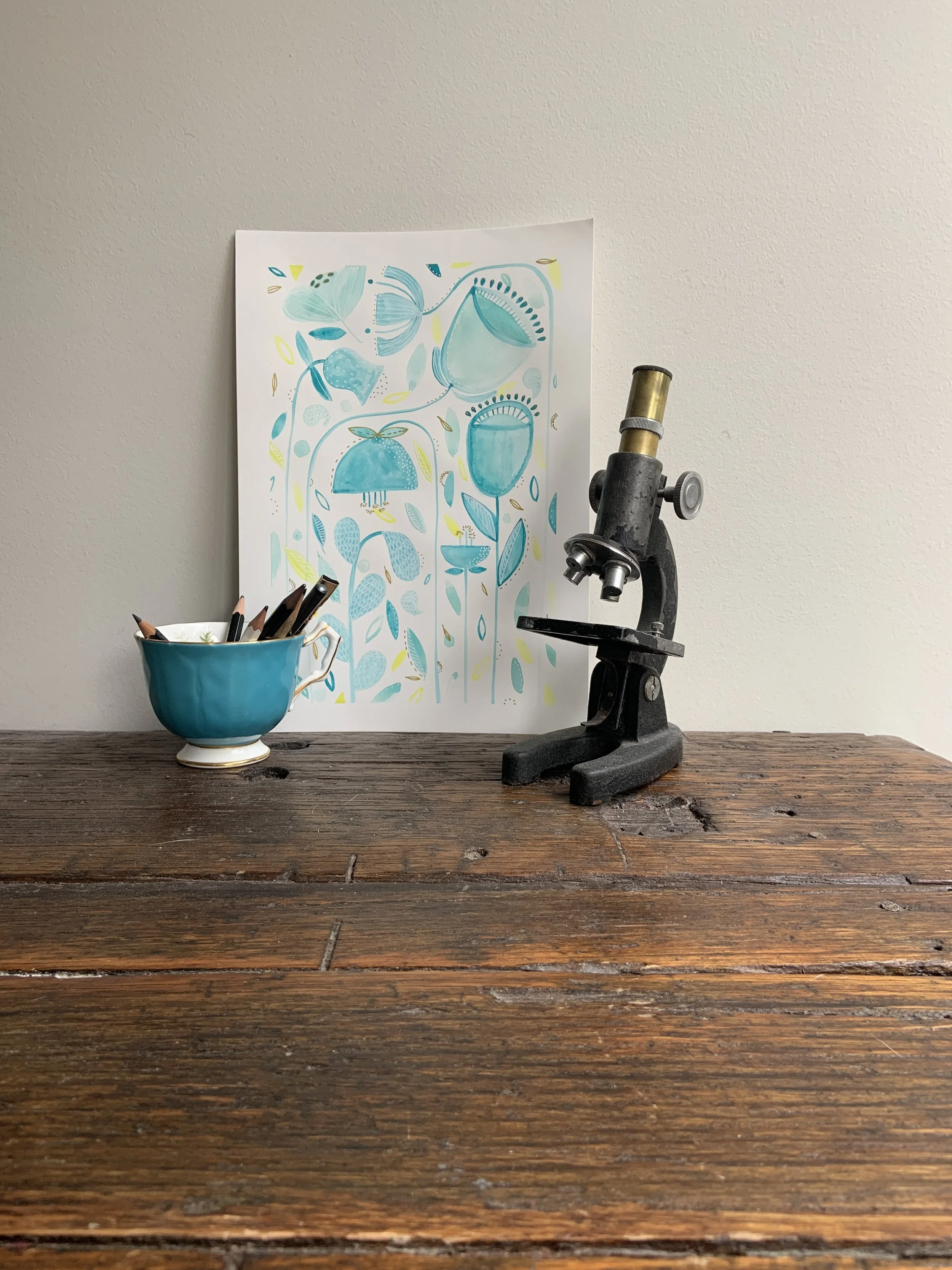 This is an original watercolour painting created by me, Twinkle. This listing is titled ' Aqua blooms are all I need to make me happy'.